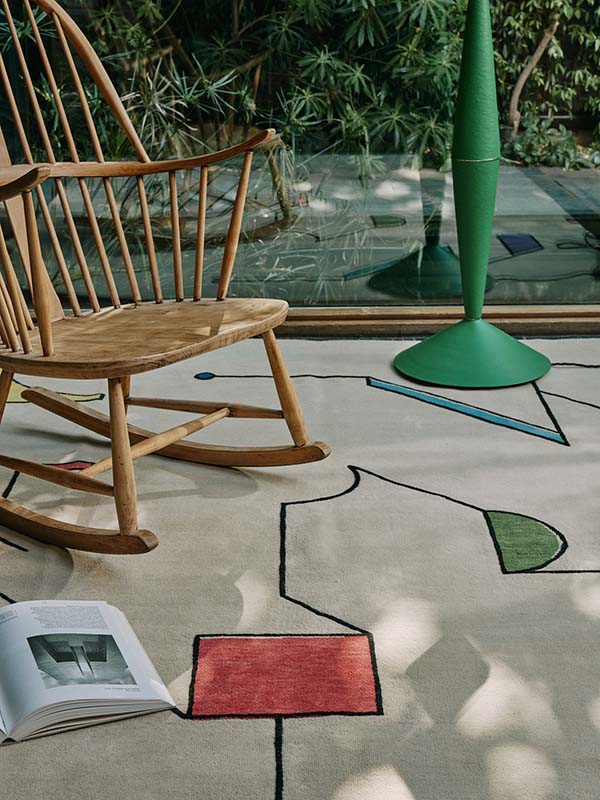 For Thomé, colour is always present and often central to his works. Here, for Circuits, the ground of undyed natural wool provides a neutral base for the circuit elements to pop. Circuits is made to order, with custom rug options available – whether simply size, or through to material blend to suit the specifics of your interior design project – here, produced in hand knotted, hand spun wool. Always in natural materials. Each and every stage of the rug production process is independently audited by Christopher Farr’s fair trade partner Label STEP.
