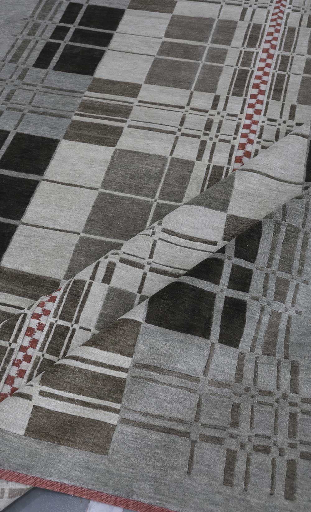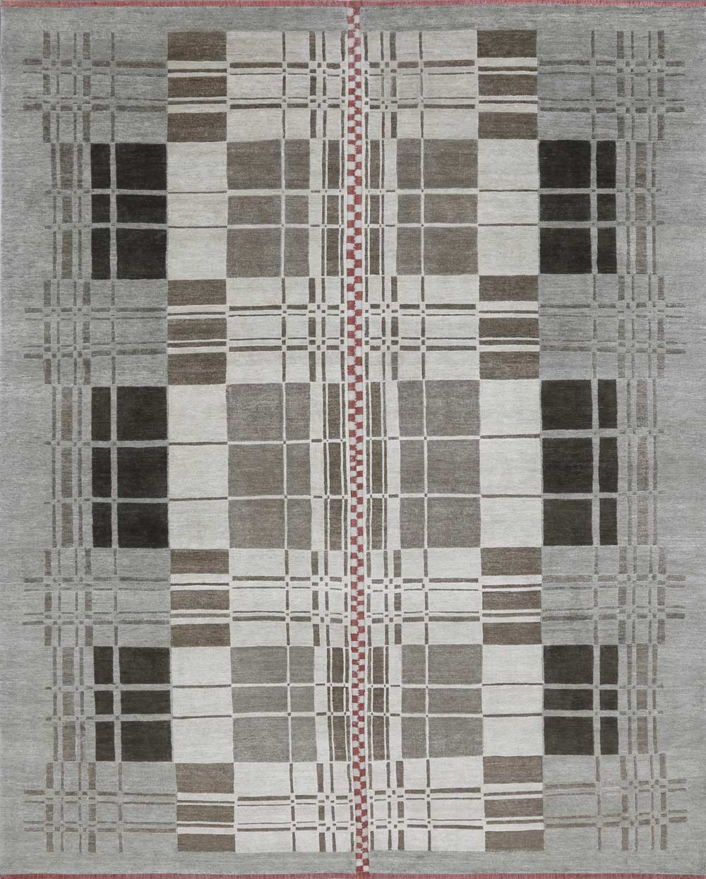 A subtle 3D effect using a combination of pile heights to define Commune’s signature plaid pattern. A mini checker kilim stripe runs down the centre of the rug.