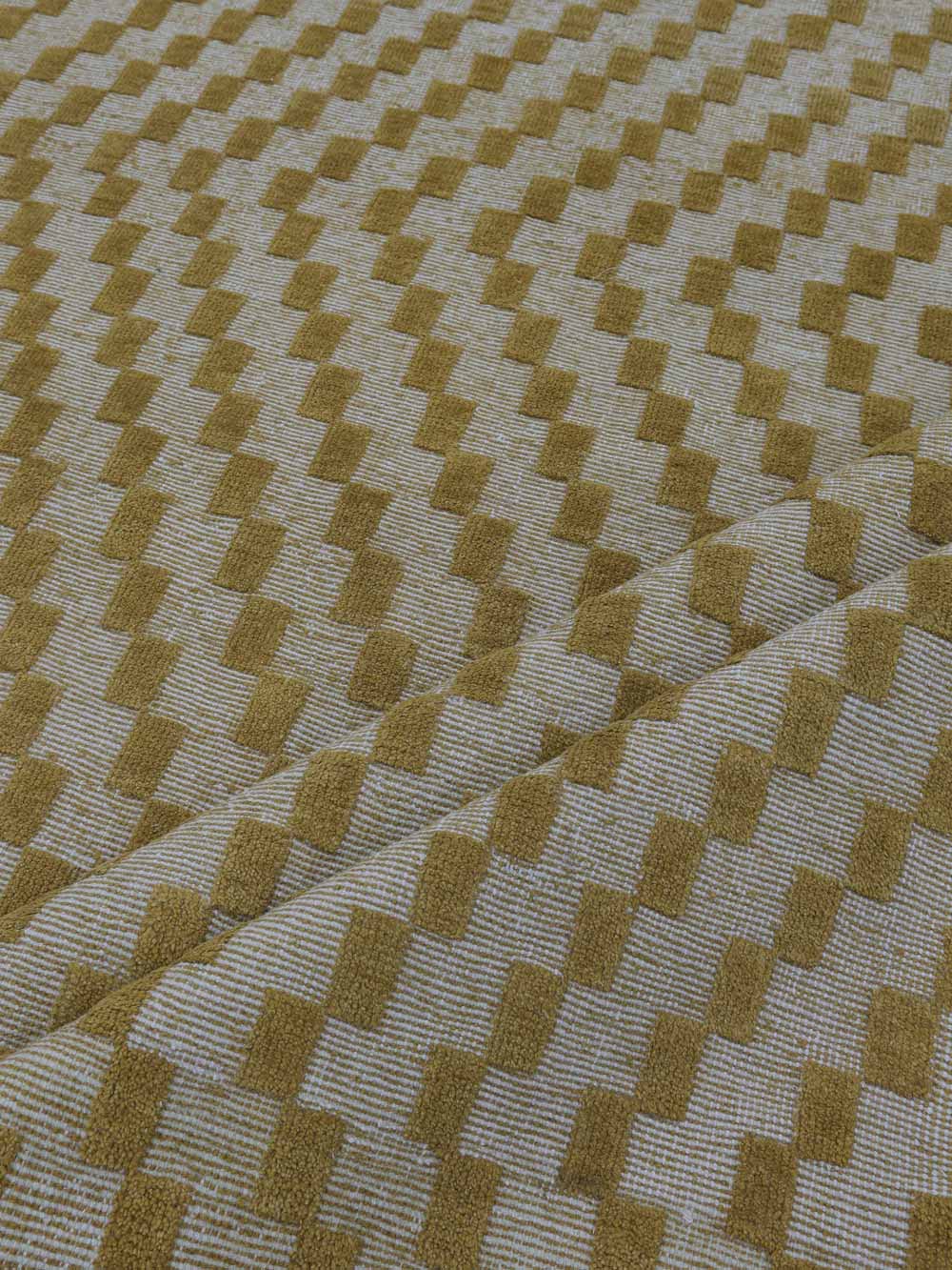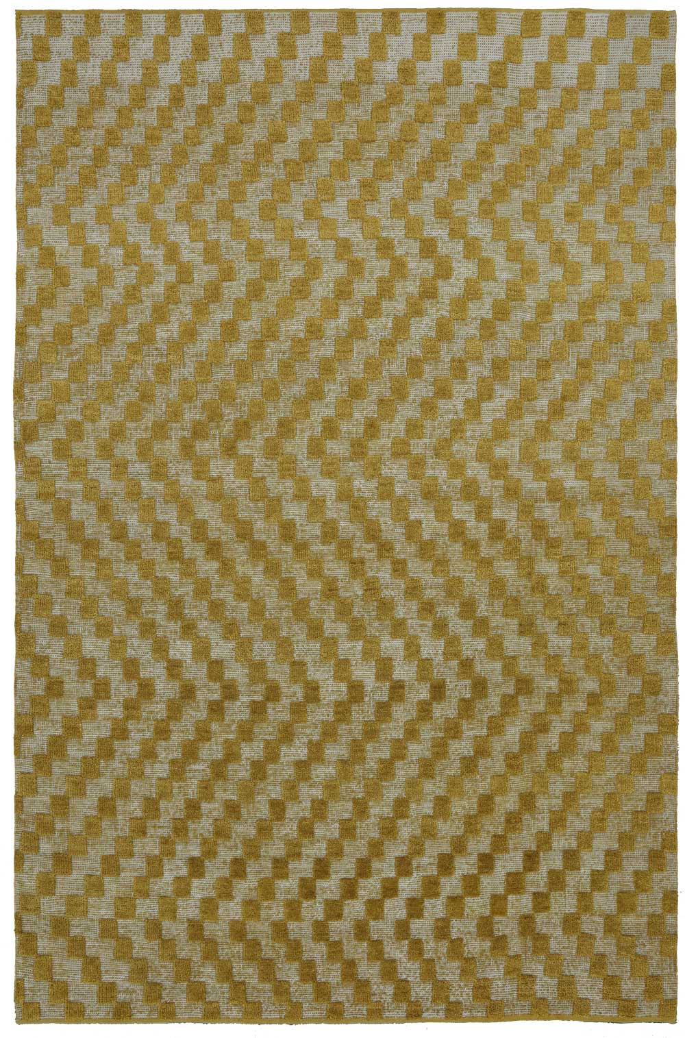 A stepped geometric design with a checked warp and weft.
