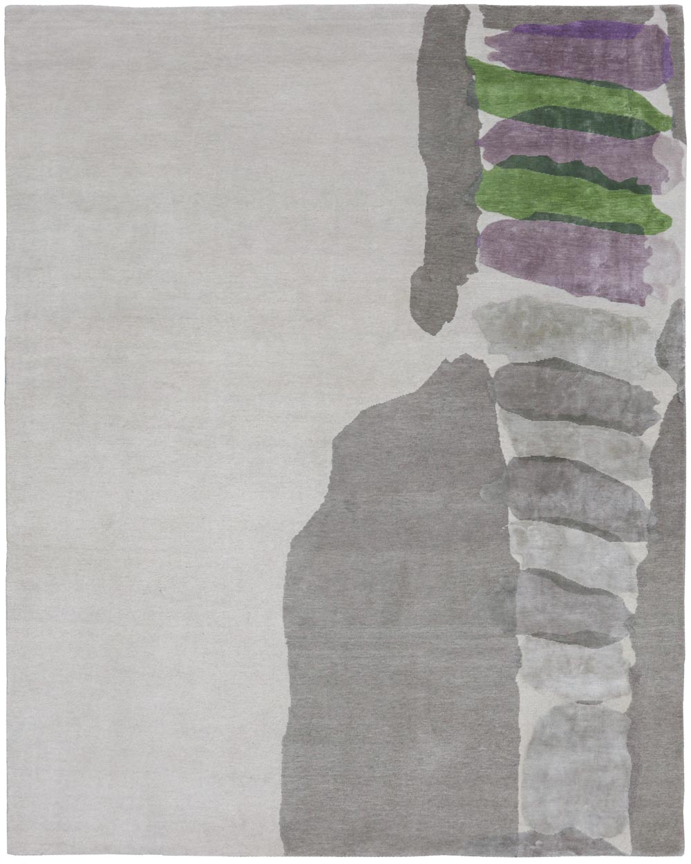 This rug was inspired by the designer standing on the shores of Croatia looking out on the transparent and vivid blue-green of the sea, overwhelmed by a sense of tranquility. In Korčula, the soft shapes form a “quiet” pattern to express this feeling. The color palette of blue, purple and green is evocative of Croatia's remarkable rich landscape.