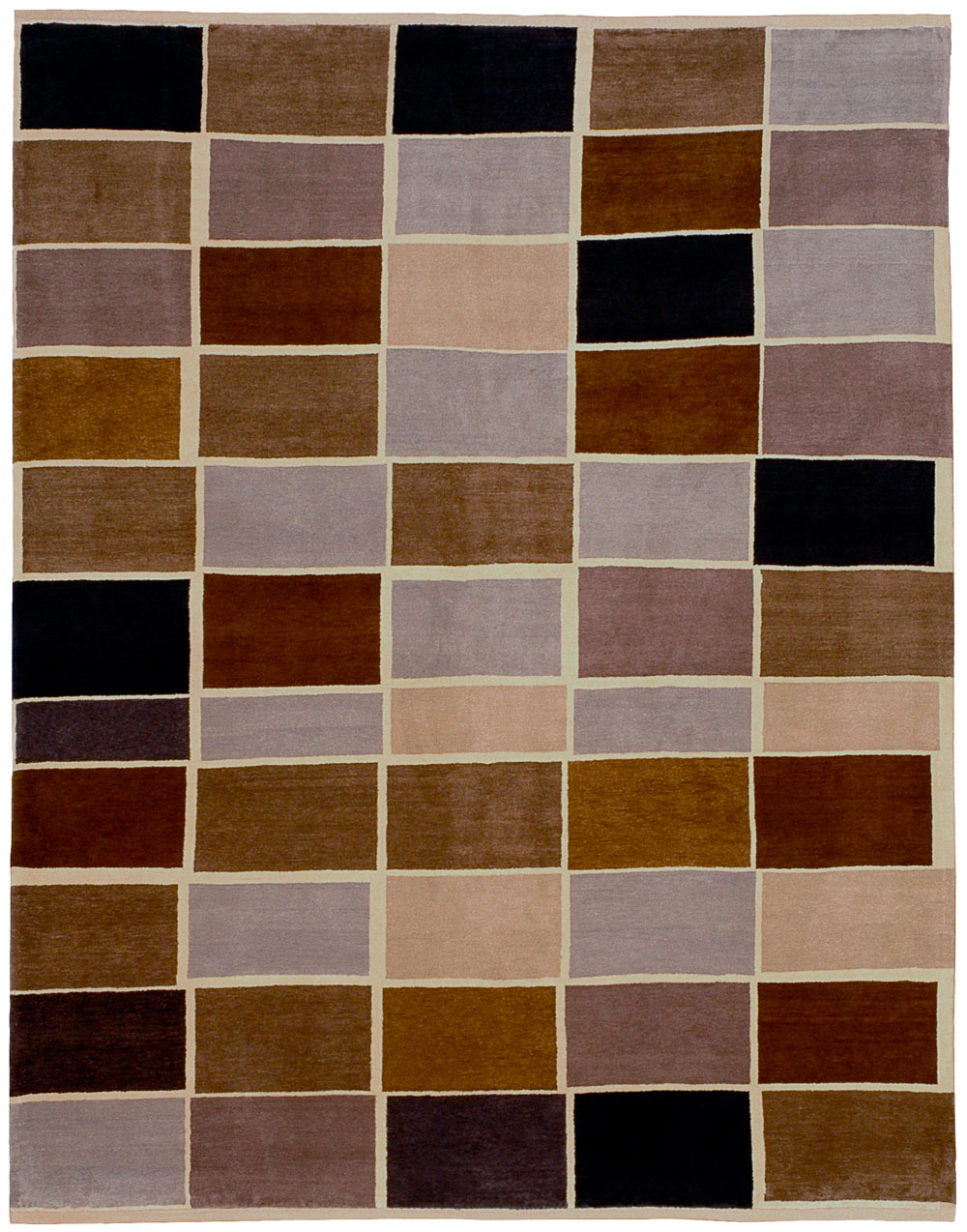 Inspired by Roman mosaic, this design is essentially rows of rectangles but each one with its own particular shape cut by hand where the space between is as important as the shape itself. It has a human rhythm. It has life. The design is very adaptable. It works if it is blown up; it works if it is repeated; it works if it is cut into to create a runner or smaller rug; and it works when its proportions are distorted. It is easily recoloured with both a fixed number of colours and a changeable number of colours.
